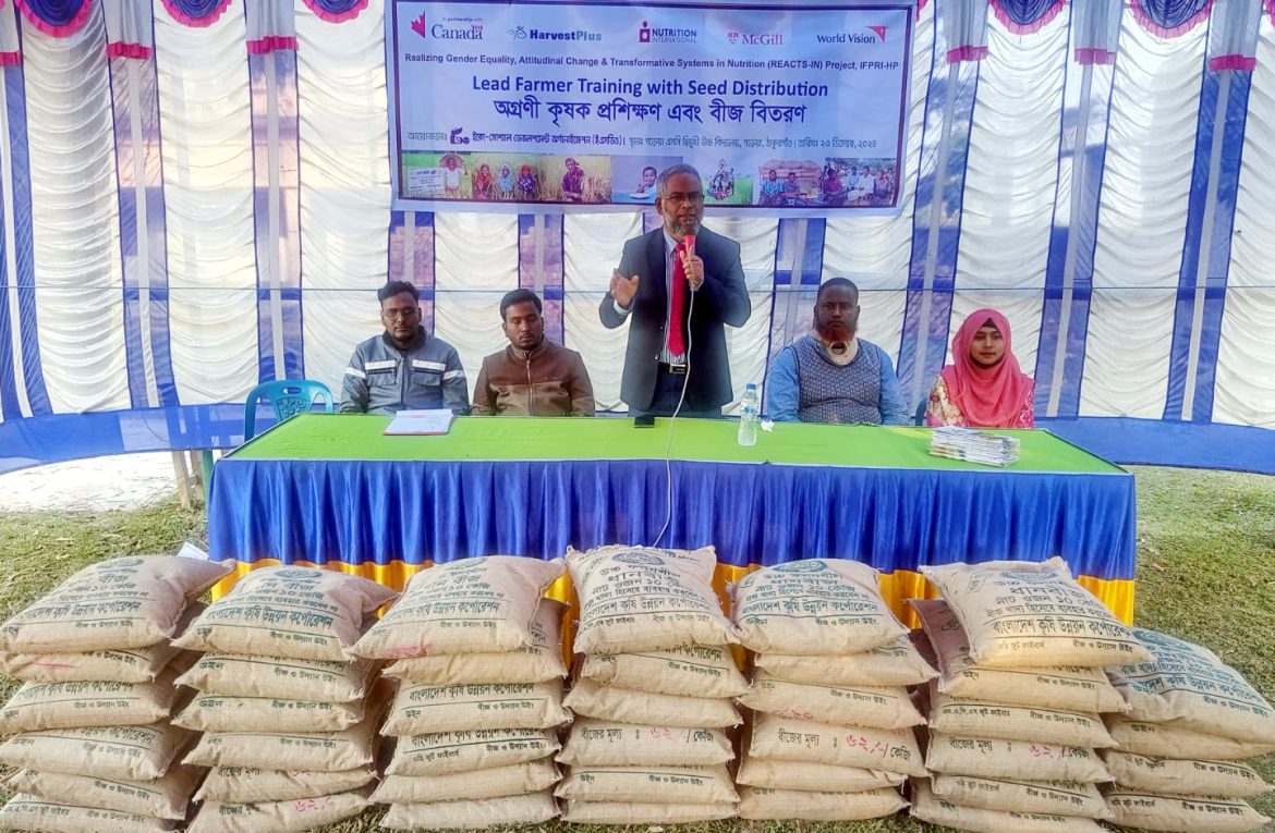 প্রশিক্ষন প্রদান শেষে প্রান্তিক পর্যায়ের ১শ জন কৃষকের মাঝে ৪ কেজি করে মোট ৪০০ কেজি জিংক ও আয়রন সমৃদ্ধ জিংক ব্রি-ধান-১০০ জাতের ভিত্তি ধান বীজ বিতরণ করা হয়।