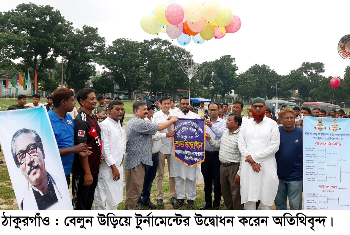 স্টাফ রিপোর্টার ॥ জাকজমকপুর্ণ আয়োজনের মধ্য দিয়ে ঠাকুরগাঁওয়ে বঙ্গবন্ধু শেখ মুজিবুর রহমান জাতীয় গোল্ডকাপ ফুটবল টুর্নামেন্ট বালক (অনুর্দ্ধ-১৭)-(উপজেলা পর্যায়) উদ্বোধন করা হয়। সোমবার বিকেলে সরকারি বালক উচ্চ বিদ্যালয় বড় মাঠে বেলুন উড়িয়ে টুর্নামেন্টের উদ্বোধন করেন প্রধান অতিথি সদর উপজেলা চেয়ারম্যান মোশারুল ইসলাম সরকার।