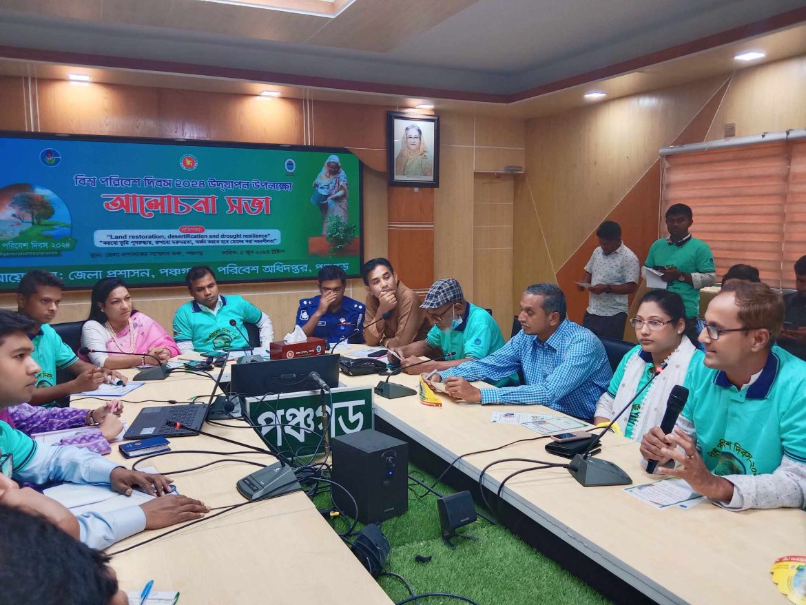 “করবো ভূমি পুনরুদ্ধার, রুখবো মরুময়তা, অর্জন হবে মোদের সহনশীলতা” এই প্রতিপাদ্যে পঞ্চগড়ে বিশ্ব পরিবেশ দিবস পালিত হয়েছে। দিবসটি উপলক্ষে বৃহস্পতিবার সকাল ১০টায় পঞ্চগড় জেলা প্রশাসকের কার্যালয় চত্বর থেকে একটি র্যালি বের করা হয়। র্যালিটি শহরের প্রধান সড়ক প্রদক্ষিণ করে একই স্থানে এসে শেষ হয়।
