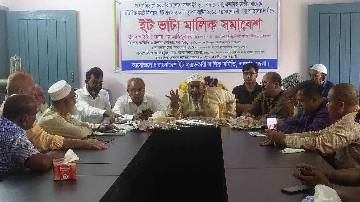 বোদা পৌরসভার মেয়র ও ইট ভাটা মালিক সমিতির জেলা শাখার সভাপতি আজাহার আলীর সভাপতিত্বে সমাবেশে প্রধান অতিথি হিসেবে বক্তব্য দেন, বাংলাদেশ ইট প্রস্তুতকারী মালিক সমিতির রংপুর জেলা শাখার সাধারণ সম্পাদক এম আজিজুল হক, সহ-সভাপতি মোজাম্মেল হক, ইট ভাটা মালিক সমিতির পঞ্চগড় জেলা শাখার সহ-সভাপতি আনোয়ার হোসেন, সাধারণ সম্পাদক হাফিজুল ইসলাম প্রমুখ।