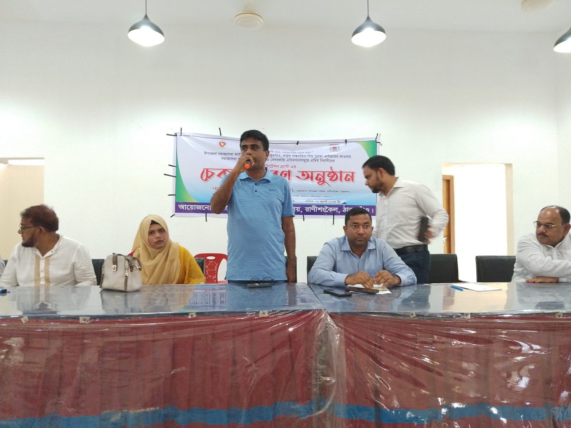 রাণীশংকৈল (ঠাকুরগাঁও) প্রতিনিধি ঃ ঠাকুরগাঁওয়ের রাণীশংকৈল উপজেলায় সোমবার (১ জুলাই) সকালে উপজেলা সমাজ সেবা কতৃক আয়োজিত অসহায়, দুঃস্থ ও এতিমদের মাঝে চেক বিতরণের সভা অনুষ্ঠিত হয়। উপজেলা হলরুমে ইউএনও রকিবুল হাসানের সভাপতিত্বে বিতরণী অনুষ্ঠানে প্রধান অতিথি হিসেবে উপস্থিত ছিলেন উপজেলা চেয়ারম্যান আহাম্মদ হোসেন বিপ্লব। বিশেষ অতিথি ভাইসচেয়ারম্যান শারমিন আক্তার,জাতীয় পাটির আহবায়ক জাহাঙ্গীর আলম, যুগ্ম আহবায়ক আবু তাহের, বীর মুক্তিযোদ্ধা হাবিবর রহমান, ইউপি চেয়ারম্যান আবুল কাশেম, প্রেসক্লাব সভাপতি মোবারক আলী প্রমুখ। এ ছাড়াও বিভিন্ন দপ্তরের কর্মকর্তা কর্মচারী বৃন্দ, সামাজিক সাংস্কৃতিক ব্যাক্তি বর্গ,প্রিন্ট ও ইলেকট্রনিক মিডিয়ায় সাংবাদিকরা উপস্থিত ছিলেন।