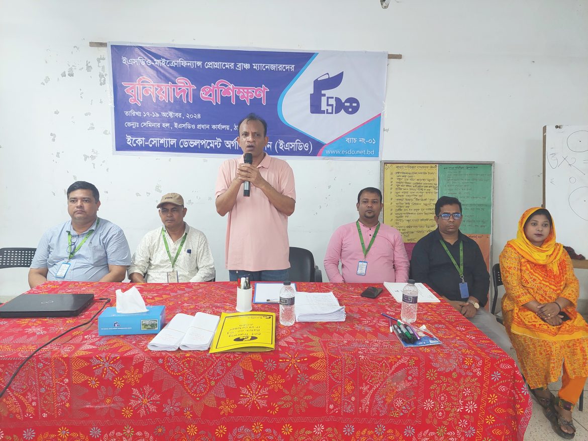 স্টাফ রিপোর্টার : ইকো-সোশ্যাল ডেভলপমেন্ট অর্গানাইজেশন (ইএসডিও) এর উদ্যোগে মাইক্রোফিন্যান্স প্রোগ্রামের ব্রাঞ্চ ম্যানেজারদের জন্য তিন দিনব্যাপী বুনিয়াদী প্রশিক্ষণ কর্মশালা সফলভাবে সম্পন্ন হয়েছে। প্রশিক্ষণটি গত বৃহস্পতিবার শুরু হয়ে শনিবার সমাপ্ত হয়। এই কর্মশালার উদ্দেশ্য ছিল মাইক্রোফিন্যান্স সেবাকে আরও উন্নত ও মানসম্মত করে তোলা এবং ব্রাঞ্চ ম্যানেজারদের দক্ষতা বৃদ্ধির মাধ্যমে প্রোগ্রামকে আরও কার্যকর করা।