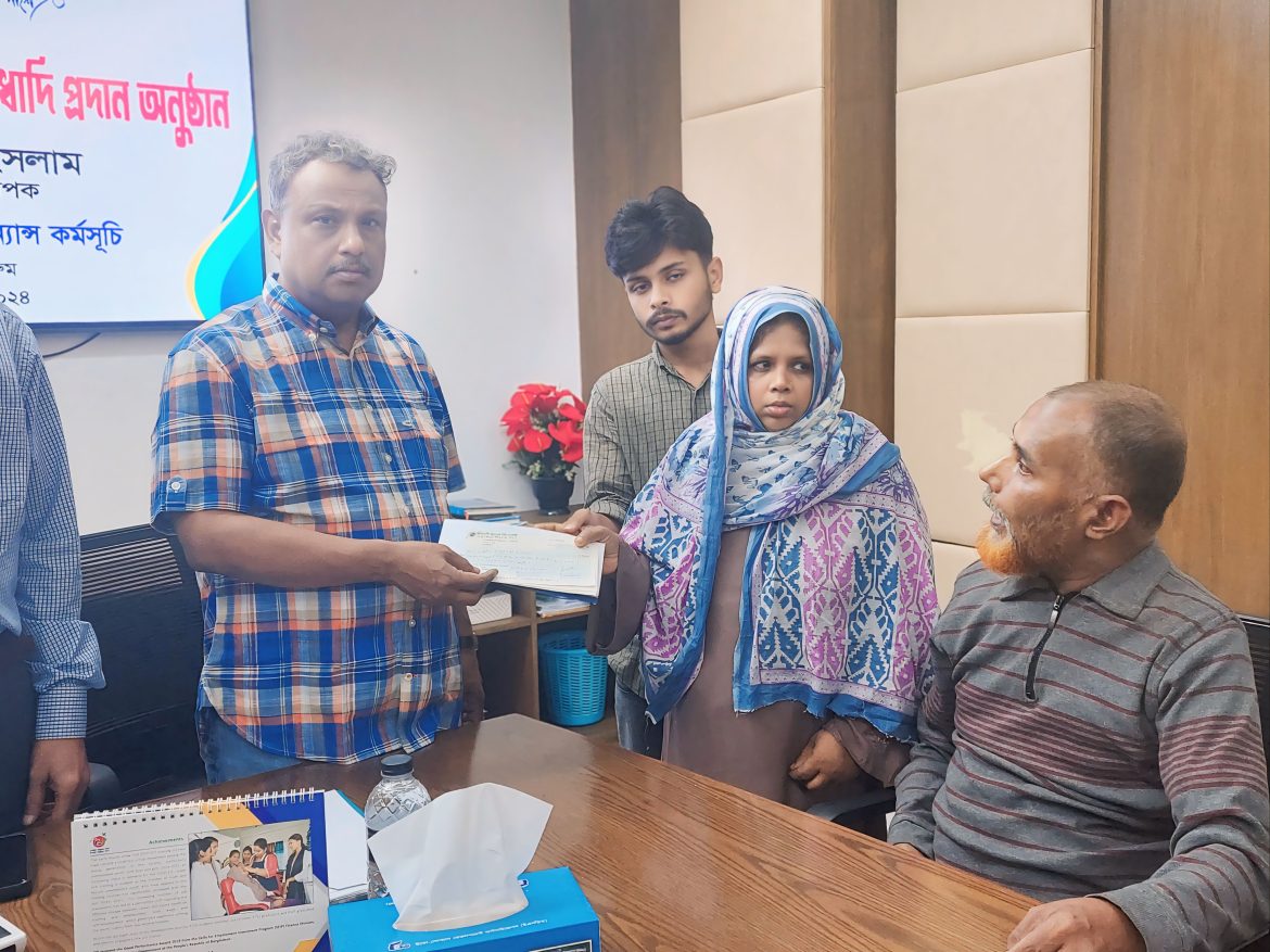 অনুষ্ঠানে প্রধান অতিথি হিসেবে ইএসডিও’র প্রতিষ্ঠাতা নির্বাহী পরিচালক ড. মুহম্মদ শহীদ উজ জামান সাবেদুল ইসলামের স্ত্রী আসমা বেগমের হাতে পিএফ ও গ্রাচুইটির চেক হস্তান্তর করেন। চেক হস্তান্তরের সময় নির্বাহী পরিচালক বলেন, “প্রতিষ্ঠানের কর্মীরা আমাদের মূল সম্পদ। তাদের দীর্ঘদিনের সেবা এবং অবদানের জন্য আমরা অত্যন্ত কৃতজ্ঞ। আজকের এই সুবিধা প্রদান কর্মীদের প্রতি আমাদের দায়িত্ব এবং তাদের ভবিষ্যৎ নিরাপত্তা নিশ্চিত করার প্রতিশ্রুতি। ইএসডিও সবসময় তার কর্মীদের পাশে ছিল এবং থাকবে। কর্মীদের স্বার্থে আমরা সব ধরনের কল্যাণমূলক উদ্যোগ গ্রহণ করব।”