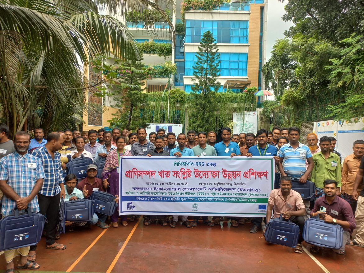 প্রাণিসম্পদখাত সংশ্লিষ্ট উদ্যোক্তা উন্নয়ন প্রশিক্ষণে প্রশিক্ষক ছিলেন বাংলাদেশ কৃষি বিশ্ববিদ্যালয়, ময়মনসিংহ এর  ডেইরি বিজ্ঞান বিভাগের  অধ্যাপক   ড. রায়হান হাবীব,  বীরগঞ্জ উপজেলা প্রাণিসম্পদ কর্মকর্তা  ডা. মো: ওসমান গনি । এ প্রশিক্ষণে রংপুর,  গাইবান্ধা,  ঠাকুরগাঁও,  নীলফামরী ও দিনাজপুর জেলার প্রকল্প ভুক্ত ৫০ জন খামারী অংশ নেয়। এছাড়াও এ সময় ইএসডিওর কর্মকর্তাবৃন্দ উপস্থিত ছিলেন।
