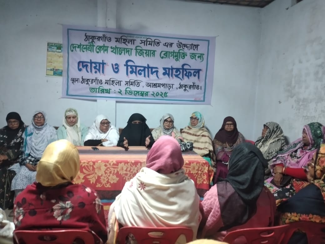 স্টাফ রিপোর্টার : ঠাকুরগাঁও মহিলা সমিতি এর উদ্যোগে সাবেক প্রধানমন্ত্রী দেশনেত্রী বেগম খালেদা জিয়ার রোগমুক্তি জন্য দোয়া ও মিলাদ মাহফিল অনুষ্ঠিত হয়েছে।