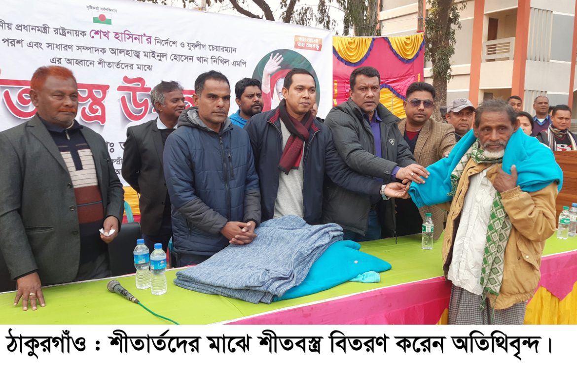 স্টাফ রিপোর্টার ॥ ঠাকুরগাঁওয়ে বঙ্গবন্ধু কন্যা প্রধানমন্ত্রী শেখ হাসিনার নির্দেশে ও যুবলীগ চেয়ারম্যান শেখ ফজলে শামস্ পরশ এবং সাধারণ সম্পাদক আলহাজ্ব মাইনুল হোসেন খান নিখিল এমপির আহবানে শীতার্তদের মাঝে শীতবস্ত্র বিতরণ করা হয়। গতকাল রোববার বিকেলে সদর উপজেলার নারগুন উচ্চ বিদ্যালয় মাঠ প্রাঙ্গনে কেন্দ্রীয় যুবলীগের সহ সম্পাদক আরিফুল ইসলাম আরিফের সৌজনে এ বিতরণ অনুষ্ঠিত হয়।