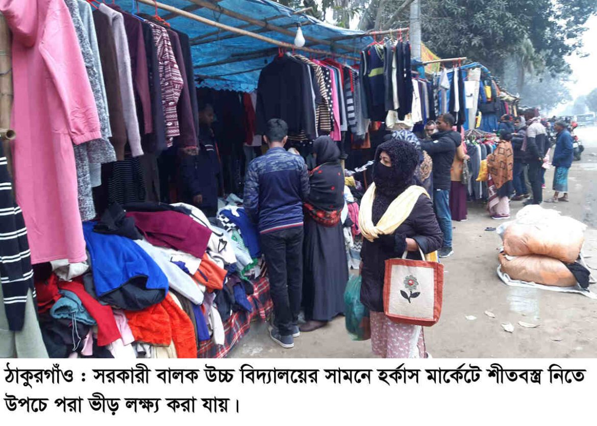 শহরের সরকারি বালক উচ্চ বিদ্যালয়ের সামনের হর্কাস মার্কেট ও ঠাকুরগাঁও রোড যুব সংসদ মাঠে পুরাতন গরম কাপড়ের দোকানে ভীড় সবচেয়ে বেশি। বিক্রিও হচ্ছে ভাল। তবে সন্ধার পর রোড যুব সংসদ হকার্স মার্কেটে ভীড় জমতে দেখা যায় বেশি। সেখানে বিভিন্ন বয়সীদের জন্য নানা ধরনের কাপড় বিক্রি হতে দেখা যায়।