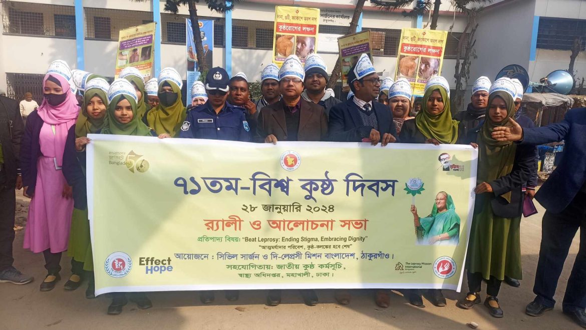 রবিবার সকাল ১১ টায় ঠাকুরগাঁও দি লেপ্রসি মিশন ইন্টারন্যাশনাল বাংলাদেশের আয়োজনে সিভিল সার্জন অফিস থেকে একটি র্যালি বের শহরের বিভিন্ন সড়ক প্রদক্ষিন করে একই স্থানে গিয়ে শেষ হয়।