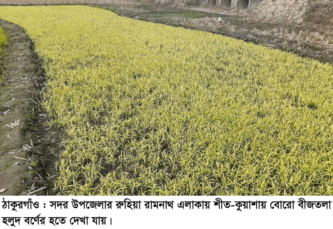 আসাদুজ্জামান শামিম : ঠাকুরগাঁওয়ে টানা বেশ কিছুদিনের তীব্র শৈত্যপ্রবাহ ও কুয়াশার কারণে বোরো ধানের বীজতলা নষ্ট হচ্ছে। এছাড়াও কুয়াশা পড়ার কারনে বীজতলায় ঠান্ডা পানি জমছে। এই পানির কারনে চারা তুলনামুলকভাবে বড় হচ্ছে না। বেশ কিছু এলাকায় গিয়ে দেখা যায় বীজতলা হলুদ বর্ণ ধারণ করেছে। মৌসুমের শুরুতেই এমন হওয়ায় কৃষকেরা দুশ্চিন্তায় পরেছেন।