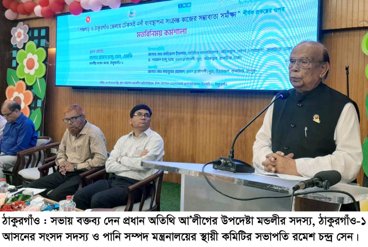 বাংলাদেশ পানি উন্নয়ন বোর্ডের প্রকল্প পরিচালক ও নির্বাহী প্রকৌশলী (পুর) এর আয়োজনে অনুষ্ঠিত সভায় রংপুর বাপাউবো উত্তরাঞ্চলের প্রধান প্রকৌশলী (পুর) মো: মাহবুবর রহমানের সভাপতিত্বে বক্তব্য দেন প্রধান অতিথি আ’লীগের উপদেষ্টা মন্ডলীর সদস্য, ঠাকুরগাঁও-১ আসনের সংসদ সদস্য ও পানি সম্পদ মন্ত্রনালয়ের স্থায়ী কমিটির সভাপতি রমেশ চন্দ্র সেন, বিশেষ অতিথি ঢাকা বাপাউবো (পরিকল্পনা, নকশা ও গবেষণা) অতিরিক্ত মহাপরিচালক মো: জহিরুল ইসলাম, ঢাকা বাপাউবোর পরিকল্পনা প্রধান প্রকৌশলী (পুর) ড. শ্যামল চন্দ্র দাস, বাংলাদেশ পানি উন্নয়ন বোর্ডের প্রকল্প পরিচালক ও নির্বাহী প্রকৌশলী (পুর) ফারজানা আহমেদ প্রমুখ।