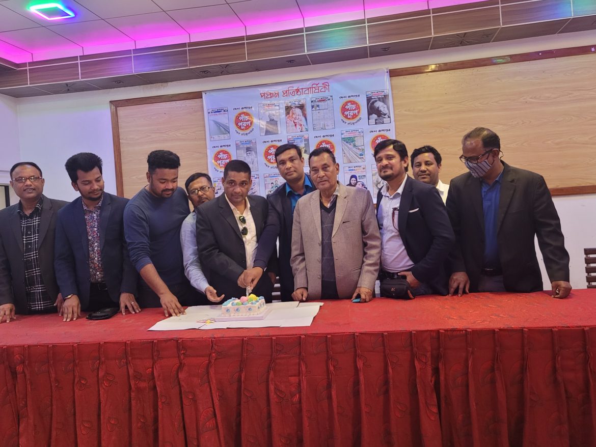 পরে প্রেসক্লাব সভাপতি মনসুর আলী ও সাধারণ সম্পাদক লুৎফর রহমান মিঠু দৈনিক দেশ রূপান্তরের পাঁচ পুরণের কেক কাটেন।