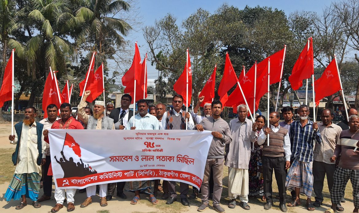 ঠাকুরগাঁওয়ে বাংলাদেশের কমিউনিস্ট পার্টি(সিপিবি) ‘র ৭৬তম প্রতিষ্ঠা বার্ষিকী উপলক্ষে লালপতাকা মিছিল ও সমাবেশ অনুষ্ঠিত হয়।