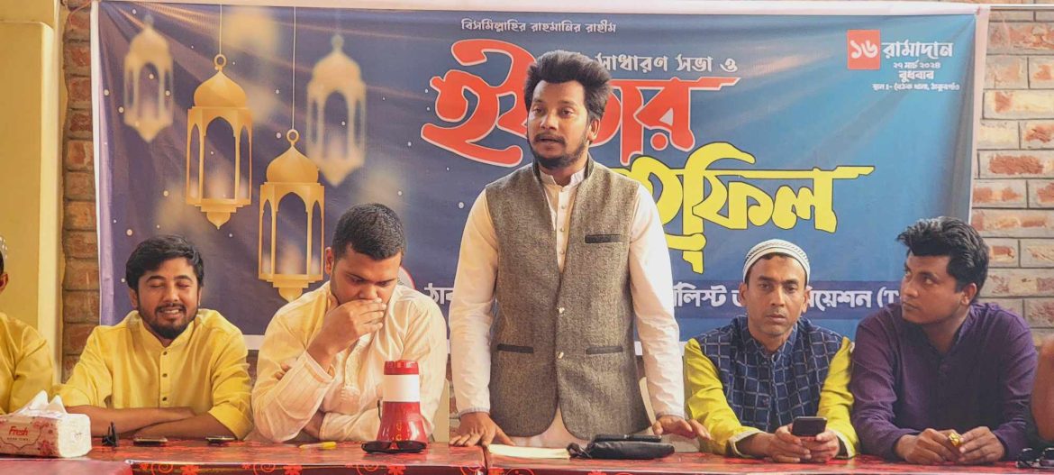 ইফতার মাহফিলে দোয়া পরিচালনা করেন ঠাকুরগাঁও অনলাইন জার্নালিস্ট অ্যাসোসিয়েশনের ক্রীড়া সম্পাদক আব্দুল্লাহ আল সুমন।