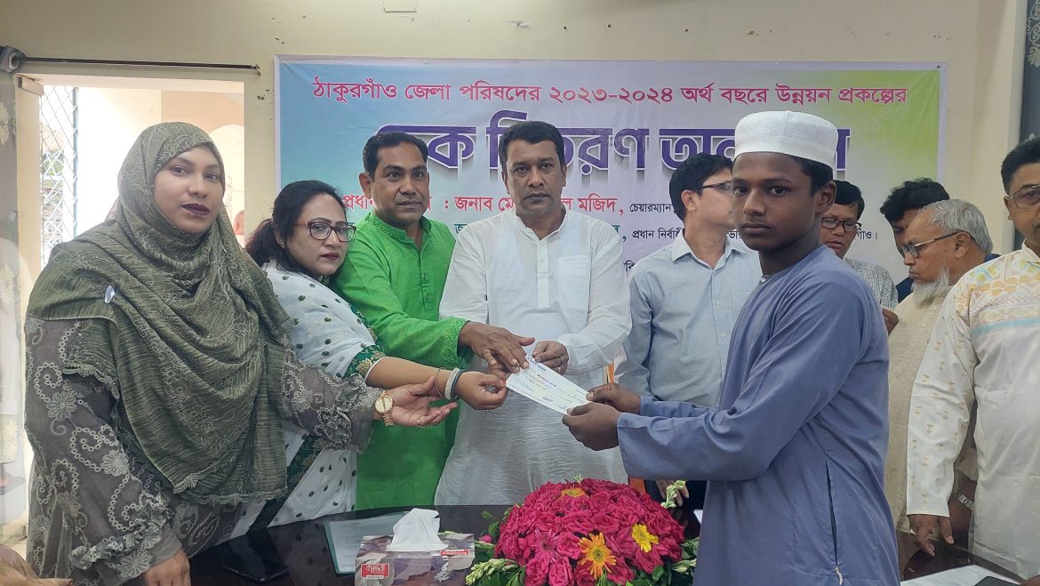 ঠাকুরগাঁও জেলা পরিষদের আয়োজনে চেক বিতরণ অনুষ্ঠানে জেলা পরিষদের প্রধান নির্বাহী কর্মকর্তা (ভারপ্রাপ্ত) বাদল চন্দ্র হালদারের সভাপতিত্বে বক্তব্য দেন প্রধান অতিথি জেলা পরিষদ চেয়ারম্যান ও জেলা যুবলীগের সভাপতি আব্দুল মজিদ আপেল । অন্যান্যের মধ্যে বক্তব্য দেন পৌর মেয়র আঞ্জুমান আরা বেগম বন্যা, পীরগঞ্জ পৌর মেয়র একরামুল হক, জেলা পরিষদের সদস্য দেবাশীষ দত্ত সমীর, সংরক্ষিত আসনের সদস্য আফসানা আখতার, মোছা: সাবিনা ইয়াসমিন, সদস্য আনিসুজ্জামান, জেলা পরিষদের হিসাব রক্ষক দিলিপ কুমার রায় প্রমুখ।
