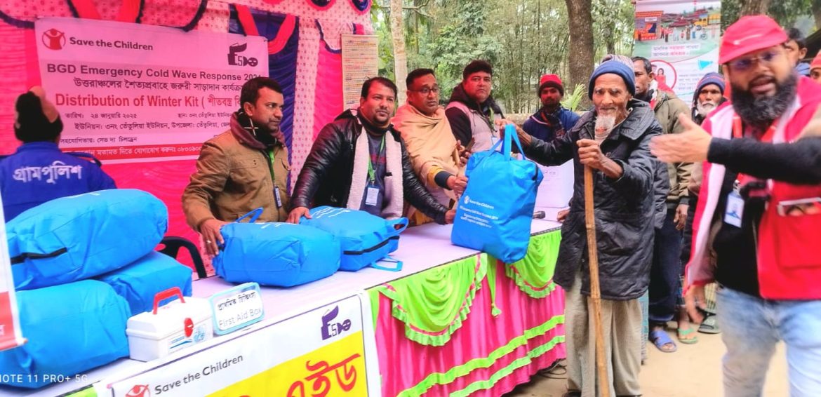 শীত প্যাকেজে স্বামী-স্ত্রীর জন্য ২টি কম্বল, শিশুদের জন্য ২টি সোয়েটার, এবং বয়স্কদের জন্য ১টি চাদরসহ একটি বহনযোগ্য ব্যাগ দেওয়াহয়। অনুষ্ঠানে প্রধান অতিথি হিসেবে উপস্থিত থেকে এই বিতরণ কার্যক্রমের শুভ উদ্বোধন করেন ৩ নং তেঁতুলিয়া ইউনিয়নের চেয়ারম্যান। অনুষ্ঠানে সেভ দ্য চিলড্রেন-এর কর্মকর্তা তাজমুল ইসলাম ও তপন বালা, উপজেলা নির্বাহী অফিসারের কার্যালয়ের প্রতিনিধি, ইএসডিওর সিনিয়র স্টাফ এবং স্থানীয় গণ্যমান্য ব্যক্তিরা উপস্থিত ছিলেন।