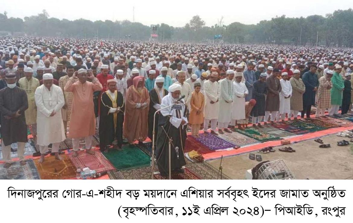 দিনাজপুরের গোর-এ-শহীদ বড় ময়দানে এশিয়ার সর্ববৃহৎ ইদের জামাত অনুষ্ঠিত হয়েছে। বৃহস্পতিবার (১১ই এপ্রিল) সকাল ৯ টা ৪ মিনিটে ইদের জামাত শুরু হয়। ইদুলফিতরের নামাজে ইমামতি করেন মাওলানা শামসুল হক কাশেমী।