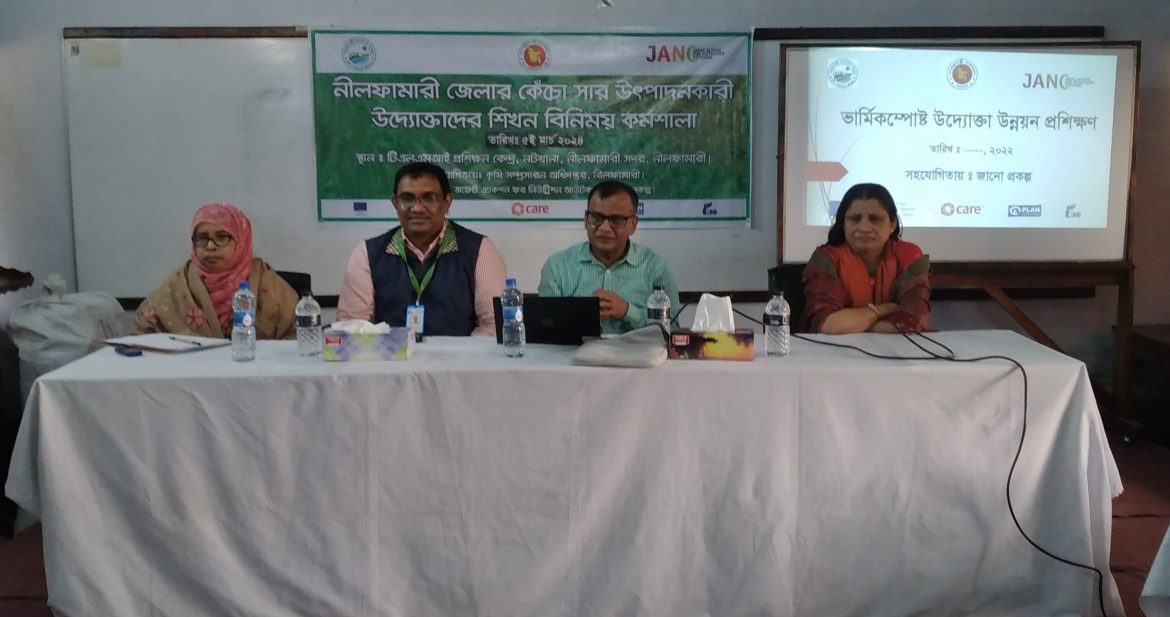 লোকায়ন রিপোর্ট: নীলফামারীতে জয়েন্ট এ্যাকশন ফর নিউট্রিশন আউটকাম (জানো) প্রকল্পের সহযোগিতায় ৫ মার্চ সকাল ১০ টায় নীলফামারীর টিএলএমআই প্রশিক্ষণ কেন্দ্রে জেলার কেচোঁ সার উৎপাদনকারী উদ্যোক্তাদের শিখন বিনিময় কর্মশালা অনুষ্ঠিত হয়েছে।