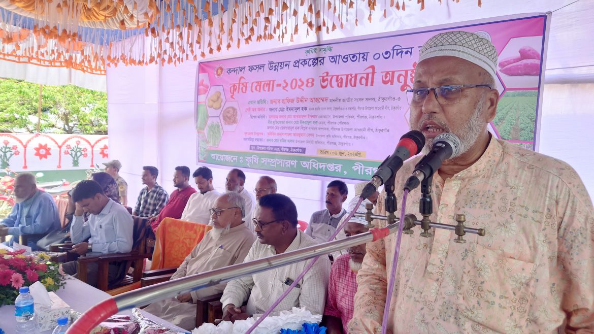 স্টাফ রিপোর্টার, পীরগঞ্জ ঃ ঠাকুরগাঁওয়ের পীরগঞ্জে তিন দিন ব্যাপী কৃষি মেলা শুরু হয়েছে। বৃহস্পতিবার দুপুরে উপজেলা পরিষদ চত্বরে মেলা উদ্বোধন করেন উপজেলা চেয়ারম্যান আখতারুল ইসলাম। কান্দাল ফসল উন্নয়ন প্রকল্পের আওতায় উপজেলা কৃষি বিভাগের আয়োজনে মেলার উদ্বোধনী সভায় অন্যান্যের বক্তব্য দেন, উপজেলা নির্বাহী অফিসার রমিজ আলম, পৌর মেয়র বীর মুক্তিযোদ্ধা ইকরামুল হক, উপজেলা কৃষি অফিসার লায়লা আরজুমান বেগম, উপজেলা জাতীয় পার্টির ভারপ্রপ্ত সভাপতি দবিরুল ইসলাম, উপজেলা কৃষক লীগের সভাপতি আব্দুল জলিল, পীরগঞ্জ প্রেসক্লাবের সভাপতি জয়নাল আবেদিন বাবুল ও উপজেলা ছাত্রলীগের সভাপতি তারভির রহমান মিঠু। মেলায় ২০ স্টল স্থান পেয়েছে।