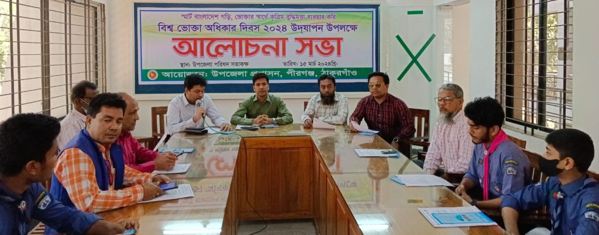 ঠাকুরগাঁওয়ের পীরগঞ্জে ‘স্মার্ট বাংলাদেশ গড়ি, ভোক্তার স্বার্থে কৃত্রিম বুদ্ধিমত্তা ব্যবহার করি’ এ প্রতিপাদ্যে বিশ্ব ভোক্তা অধিকার দিবস উপলক্ষে আলোচনা সভা হয়েছে। শুক্রবার সকালে উপজেলা পরিষদ সভাকক্ষে উপজেলা প্রশাসনের আয়োজনে এ সভা হয়।