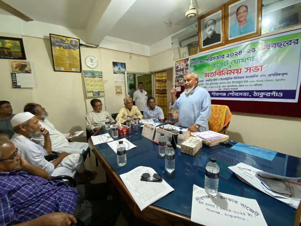 স্টাফ রিপোর্টার, পীরগঞ্জ :ঃ ঠাকুরগাঁওয়ের পীরগঞ্জ পৌরসভার ২০২৪-২৫ অর্থ বছরে ৫৬ কোটি ৯২ লাখ ১২ হাজার ২১৪ টাকার বাজেট ঘোষণা করা হয়েছে। বৃহস্পতিবার সকাল ১১ টার দিকে পৌরসভা কার্যালয়ে এ বাজেট ঘোষণা করেন মেয়র বীরমুক্তিযোদ্ধা ইকরামুল হক। ঘোষিত বাজেটে রাজস্ব রায় ধরা হয়েছে ৩ কোটি ৬৮ লাখ ৫৪ হাজার ৫৫২ টাকা। ব্যয় ধরা হয়েছে ৩ কোটি ৬৮ লাখ ৫৪ হাজার ৫৫২ টাকা। উন্নয়নখাতে আয় ধরা হয়েছে ৫৩ কোটি ২৩ লাখ ৫৭ হাজার ৬৬২ টাকা। ব্যয় ধরা হয়েছে ৫৩ কোটি ২৩ লাখ ৫৭ হাজার ৬৬২ টাকা। নতুন করে কোনো করারোপ করা হয়নি। সভায় অন্যান্যের মধ্যে বক্তব্য রাখেন, পৌর মুক্তিযোদ্ধা কমান্ডের আহ্বায়ক নুরুজ্জামান, উপজেলার আওয়ামীলীগ নেতা মোঃ শাহজাহান, পীরগঞ্জ প্রেসক্লাব সভাপতি জয়নাল আবেদীন বাবুল, সাধারণ সম্পাদক নসরতে খোদা রানা, সাংবাদিক দীপেন রায়, মোশারফ হোসেন, পৌরসভার নির্বাহী প্রকৌশলী নূরজামান, পৌরসভার হিসাব রক্ষক রফিকুল ইসলাম, প্রধান সহকারী নূর মোহাম্মদ, পৌর কর্মচারী সার্ভিস এসোসিয়েশনের সভাপতি তোজাম্মেল হক প্রমূখ। এসময় পৌরসভার কাউন্সিলর, কর্মকর্তা-কর্মচারী, বিভিন্ন গণমাধ্যমে কর্মরত সাংবাদিক ও সচেতন নাগরিকরা উপস্থিত ছিলেন।