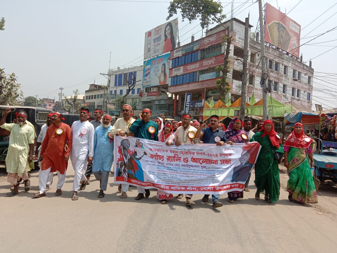 বোদা (পঞ্চগড়) প্রতিনিধিঃ পঞ্চগড়ের বোদায় মহান মে দিবস নানান কর্মসুচীর মধ্যে দিয়ে পালিত হয়েছে। দিবসের শুরুতে জাতীয় ও দলীয় পতাকা উত্তোলনের মধ্যে দিয়ে মহান মে দিবসের কাযক্রম শুরু হয়। জাতীয় শ্রমিকলীগ বোদা উপজেলা শাখা, উপজেলা অটোবাইক মালিক সমবায় সমিতি, উপজেলা কার ও মাইক্রোবাস চালক সমিতি ও উপজেলা হোটেল শ্রমিক ইউনিয়ন, লেবার ও কুলি শ্রমিক ইউনিয়ন এর যৌথ উদ্যোগ একটি বনাঢ়্য র্যালী উপজেলা সদরে বিভিন্ন রাস্তা প্রদক্ষিণ করে বোদা কেন্দ্রীয় শহীদ মিনার চত্বরে শেষ হয়। উপজেলা অটোবাইক মালিক সমবায় সমিতির সভাপতি জুলফিকার আলীর সভাপতিত্বে ও সাধারণ সম্পাদক ইউসুফ এর স ালনায় মে দিবসের আলোচনা সভায় প্রধান অতিথির বক্তব্য রাখেন উপজেলা আওয়ামীলীগের সভাপতি এ্যাড ওয়াহিদুজ্জামান সুজা। অন্যান্যদের মধ্যে বক্তব্য রাখেন বাংলাদেশ জাসদ প গড় জেলা কমিটির সভাপতি এমরান আল আমিন, উপজেলা আওয়ামীলীগের যুগ্ম সাধারণ সম্পাদক ও উপজেলা পরিষদ চেয়ারম্যান পদ প্রাথী রবিউল আলম সাবুল, উপজেলা আওয়ামীলীগের যুগ্ম সাধারণ সম্পাদক রাসেদ প্রধান, উপজেলা চেয়ারম্যান প্রার্থী ও আইনজীবি এ্যাডঃ হাবিব আল আমিন ফেরদৌস, ভাইস-চেয়ারম্যান প্রাথী জীতেন্দ্রনাথ রায়, মহিলা ভাইস চেয়ারম্যান প্রাথী জেবুন নেহার মুক্তা ও লাইলী বেগম ও স্থানীয় বিভিন্ন শ্রমিক সংগঠনের নেতাকর্মীরা।