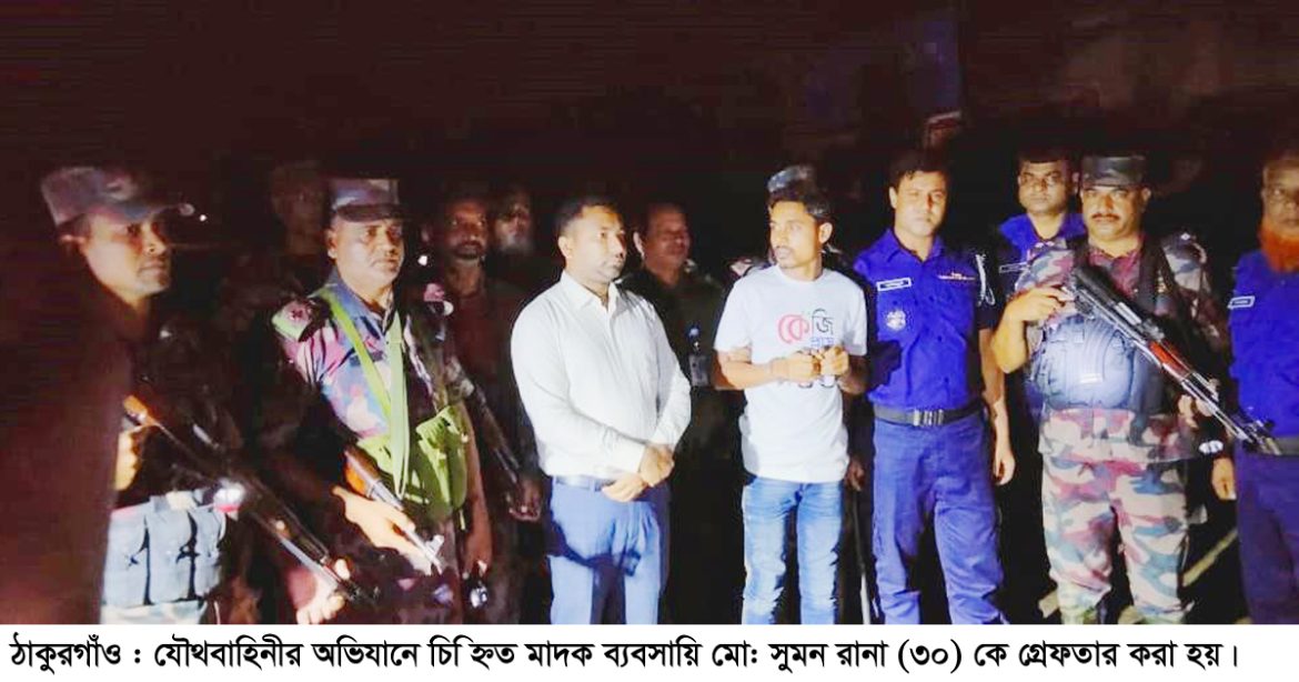 ঠাকুরগাঁও ব্যাটালিয়ন (৫০ বিজিবি) প্রেস বিজ্ঞপ্তির মাধ্যমে জানায়, ওই দিন রাতে রানীশংকৈল উপজেলা নির্বাহী অফিসার, পুলিশ, আনসার সমন্বয়ে টাস্কফোর্স গঠন করা হয়। ঠাকুরগাঁও ব্যাটালিয়ন (৫০ বিজিবি) এর অধিনস্থ জগদল বিওপির দায়িত্বপুর্ন এলাকার সীমান্ত পিলার ৩৭৪/৩-আর হতে আনুমানিক ৭শ গজ বাংলাদেশের অভ্যন্তরে অভিযান পরিচালনা করা হয়। এ সময় উপজেলাধীন কাশিপুর ইউপির ‘চেকপোষ্ট কলোনী” গ্রামে মাদকবিরোধী অভিযান পরিচালনা করে যৌথবাহিনী। এ সময় ওই গ্রামের মো: রফিকের ছেলে মো: সুমন রানাকে ফেনসিডিলসহ আটক করা হয়। পরে তাকে ভ্রাম্যমান আদালতের মাধ্যমে ৩ মাসের বিনাশ্রম কারাদন্ডাদেশ প্রদান করেন রানীশংকৈল উপজেলা নির্বাহী অফিসার। তার বিরুদ্ধে রানীশংকৈল থানায় মাদকদ্রব্য নিয়ন্ত্রণ আইনে একাধিক মামলা নথিভুক্ত রয়েছে বলে প্রেস বিজ্ঞপ্তির মাধ্যমে জানানো হয়।