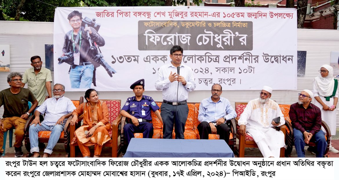 রংপুরে পাঁচ দিনব্যাপী একক আলোকচিত্র প্রদর্শনী শুরু হয়েছে। বুধবার (১৭ই এপ্রিল) সকালে রংপুরের জেলাপ্রশাসক মোহাম্মদ মোবাশ্বের হাসান টাউন হল চত্বরে ফিতা কেটে এ আলোকচিত্র প্রদর্শনীর উদ্বোধন করেন। ফটোসাংবাদিক ও চলচ্চিত্র নির্মাতা ফিরোজ চৌধুরীর তোলা নারী ও শিশু-বিষয়ক ১৩৫টি ছবি প্রদর্শনীতে স্থান পেয়েছে। প্রদর্শনী চলবে প্রতিদিন সকাল ১০ টা থেকে রাত ৯ টা পর্যন্ত। প্রদর্শনীটি সকলের জন্য উম্মুক্ত থাকবে। আগামী ২১শে এপ্রিল প্রদর্শনীর সমাপ্তি ঘটবে।