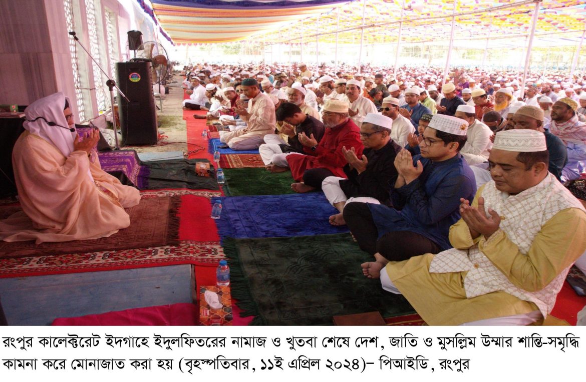 রংপুর কালেক্টরেট ইদগাহে নামাজ আদায় করেন জাতীয় সংসদের বিরোধী দলীয় নেতা গোলাম মোহাম্মদ কাদের, বিভাগীয় কমিশনার মোঃ জাকির হোসেন, রংপুর সিটি কর্পোরেশনের মেয়র মোঃ মোস্তাফিজার রহমান-সহ স্থানীয় জনপ্রতিনিধি, সরকারি কর্মকর্তা, বিভিন্ন রাজনৈতিক দলের নেতৃবৃন্দ এবং হাজার হাজার ধর্মপ্রাণ মুসল্লি। নামাজ ও খুতবা শেষে দেশ, জাতি ও মুসলিম উম্মার শান্তি-সমৃদ্ধি কামনা করে মোনাজাত অনুষ্ঠিত হয়।