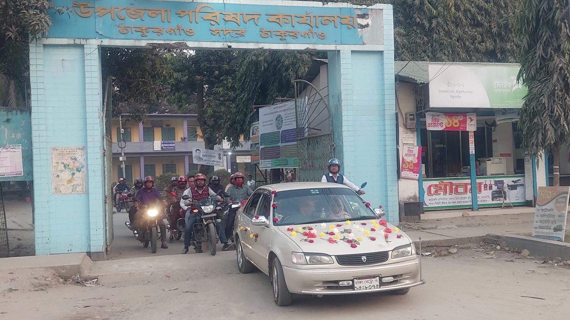 স্টাফ রিপোর্টার: অশ্রুসিক্ত নয়নে বিদায় দেওয়া হল ঠাকুরগাঁওয়ের উপজেলা শিক্ষা অফিসার মোছা: রুনা লায়লাকে। ফুল দিয়ে সাজানো হয় তার যাওয়ার গাড়ি। মোটরসাইকেল প্রটোকল দিয়ে তাকে পৌঁছে দেয়া হয় তার বাড়িতে।