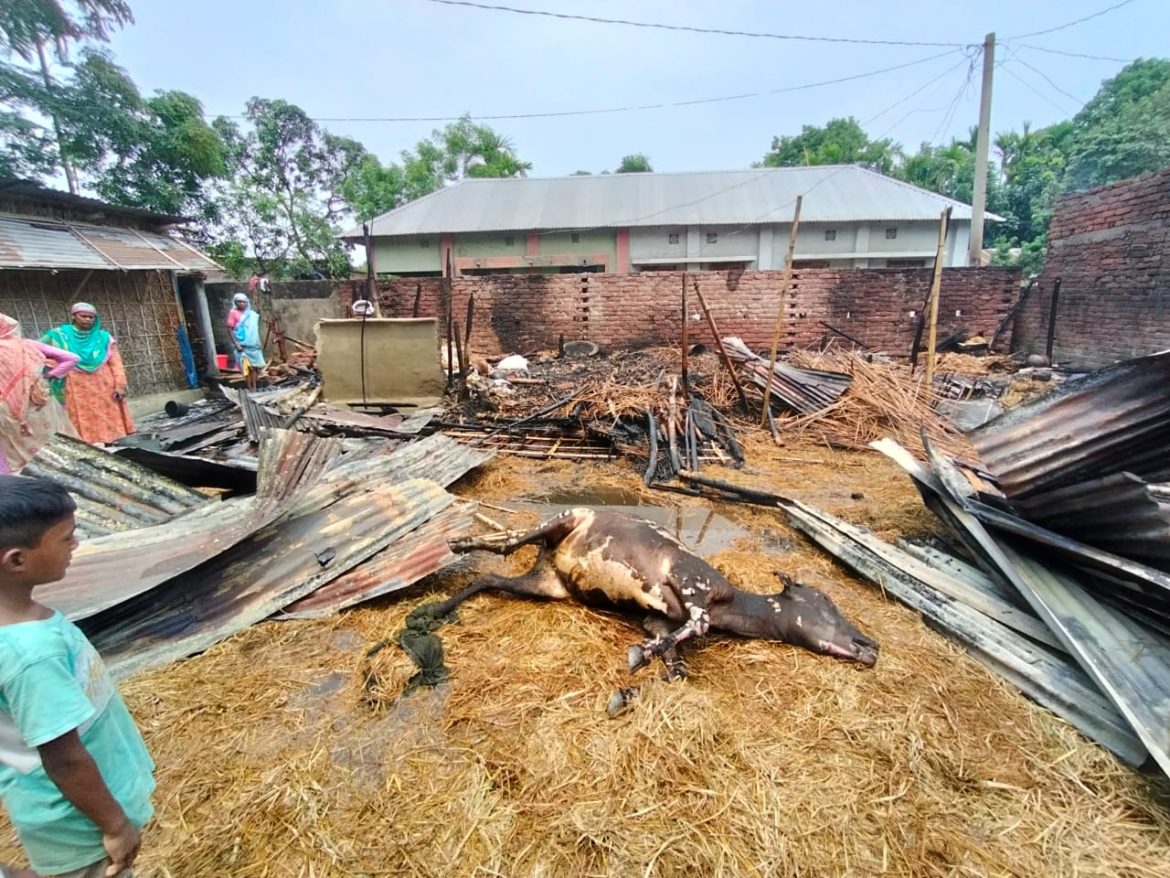 মঙ্গলবার (১১ জুন) সকালে উপজেলার নেকমরদ ইউনিয়নের কৃষক মাসুদ রানার বাড়িতে এ অগ্নিকাণ্ডের ঘটনা ঘটে।ফায়ার সার্ভিস ও প্রত্যক্ষদর্শীরা জানায়, রান্না ঘরের চুলার জ্বলন্ত ছাই হইতে পাশে থাকা শুকনা খড়ির মাধ্যমে আগুন লাগার সূত্রপাত হয়। এসময় ১টি বসতঘর, ২টি গোয়ালঘর, ১টি খড়িঘর, ১টি রান্নাঘর এবং একটি ষাড় গরু পুড়ে মারা যায়।