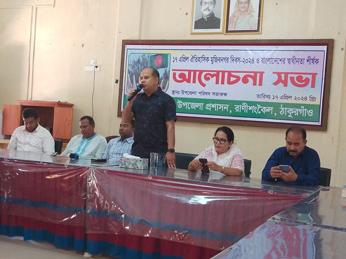 রাণীশংকৈল (ঠাকুরগাঁও) প্রতিনিধিঃ ঠাকুরগাঁয়ের রাণীশংকৈল উপজেলা হলরুমে বুধবার (১৭ এপ্রিল) ঐতিহাসিক মুজিবনগর দিবসের পটভূমি,তাৎপর্য ও বাংলদেশের স্বাধীনতা শীষক আলোচনা সভা অনুষ্ঠিত হয়।