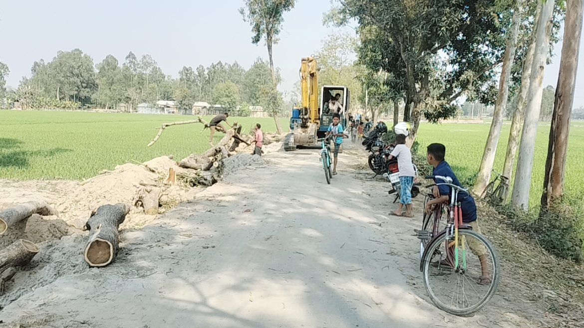 কিন্তু এরই মাঝে সড়ক প্রসস্থ করণ কাজ শুরু করে এলজিইডি। তবে সরকারি কোন নিয়ম নীতির তোয়াক্কা না করে সড়কের প্রায় দুই শতাধিক গাছ কেটে ফেলা হয়েছে বলেছে নারীদের অভিযোগ।