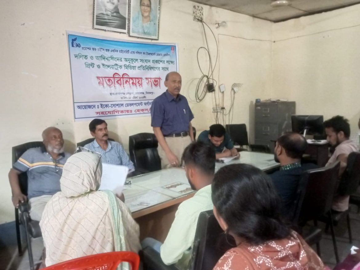 লোকায়ন রিপোর্ট: বৃহ:স্পতিবার সকাল ১০.০০টায় দিনাজপুরের বোচাগঞ্জ উপজেলার সেতাবগঞ্জ প্রেসক্লাব কার্যালয়ে ইএসডিও প্রেমদীপ প্রকল্প দলিত আদিবাসীদের অনুকুলে সংবাদ প্রকাশের লক্ষে প্রিন্ট ও ইলেকট্রনিক মিডিয়া প্রতিনিধিগনের সাথে মতবিনিময় সভা করেছে।সেতাবগঞ্জ প্রেসক্লাবের সভাপতি আব্দুস সাত্তারএর সভাপতিত্বে সভায় বক্তব্য রাখেন প্রকল্পের টিভেট এন্ড ইয়ুথ ডেভলপমেন্ট অফিসার মো: শাহীন,প্রকল্পের মোছাঃ ঝর্না বেগম, প্রেসক্লাবের সহ- সভাপতি বরুন চন্দ্র সরকার,সাধারণ সম্পাদক মোঃ সাজ্জাদ হোসেন,সহ- সম্পাদক ফরিদ আহমেদ এবং প্রেস এর অন্যান্য সদস্যগণ উপস্থিত ছিলেন।সভায় সাংবাদিকরা দলিত আদিবাসীদের যে কোন সমস্যায় তাদের অনুকুলে সংবাদ প্রকাশের সহয়তার জন্য অভিমত প্রকাশ করেন।তাছাড়া মাদ্রাসাপাড়া কমিউনিটির শিল্পি ঋষি, মুর্শিদহাট দলিত কমিউনিটির বিশাল বাসফোর ও বাসন্তি ঋষি উপস্থিত ছিলেন। পিওসিরা তাদের কমিউনিটির সমস্যাগুলি তুলে ধরেন । সভাপতি তাঁর বক্তব্য বলেন আদিবাসি ও দলিতদের সমস্যাসমূহ অনেক পরিবর্তন এসেছে। তিনি ইএসডিও প্রেমদীপ প্রকল্পকে ধন্যবাদ দেন। তাদের সংবাদ প্রকাশের আশ্বাস দেন।
