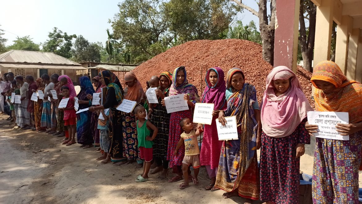 বুধবার দুপুরে সদর উপজেলার ৭০নং বাঁশগাড়া সরকারি প্রাথমিক বিদ্যালয়ের সামনে এ মানববন্ধন কর্মসূচি পালন করেন এলাকাবাসী।