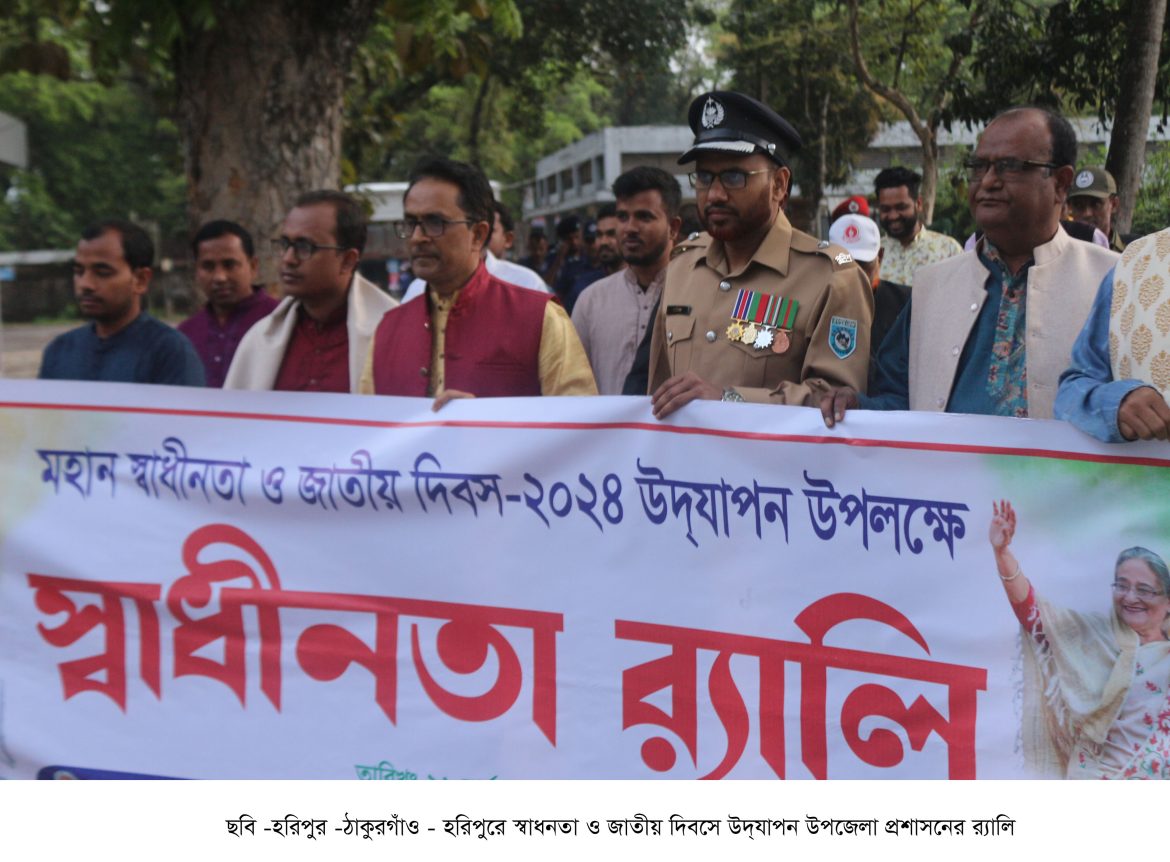 হরিপুর(ঠাকুরগাঁও)প্রতিনিধিঃ টাকুরগাঁওয়ের হরিপুরে উপজেলা প্রশাসনের আয়োজনে যথাযোগ্য মর্যাদার সহিত বিভিন্ কর্মসূচির মধ্যদিয়ে ২৬ মার্চ মহান স্বাধীনতা দিবস ও জাতীয় দিবস পালিত হয়েছে। সূর্য্যদেয়ের সাথে সাথে ৩১বার তোপধ্বনির মাধ্যমে স্বাধীনতা ও জাতীয় দিবসের শুভ সূচনা শুরু হয়। দিবসের কর্মসূচি অনুযায়ী স্মৃতিসৌধে পুস্পস্তবক অর্পণ,স্বাধীনতা র্যালি,জাতীয় পতাকা উত্তোলন, কুচকাওয়াজ ও ডিসপ্লে এবং ক্রীড়ানুষ্ঠান.মুক্তিযোদ্ধাদের সংবর্ধনা ও আলোচনা সভা, হাসপাতাল ও এতিম খানায় উন্নতমানের খাবার পরিবেশন সহ বিশেষ মুনাজাত অনুষ্ঠিত হয়।