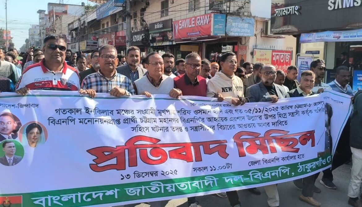 হাদিকে গুলি করে হত্যাচেষ্টা: ঠাকুরগাঁওয়ে বিএনপির প্রতিবাদ মিছিল